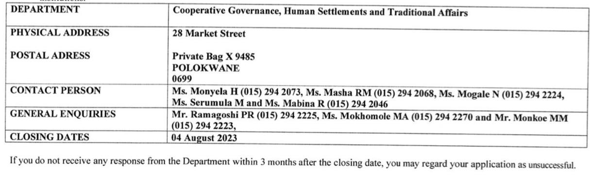 Limpopo Department of Cooperative Governance, Human Settlements and Traditional Affairs invites unemployed graduates to apply for a 24-month Graduate / Internship Programme 2023-2025.