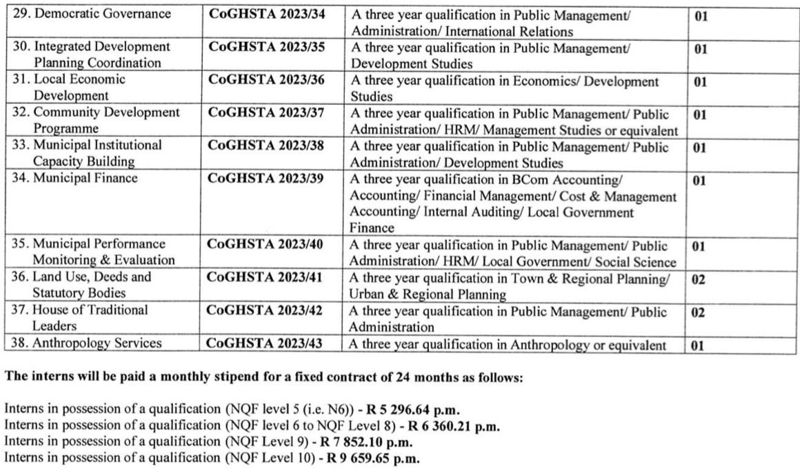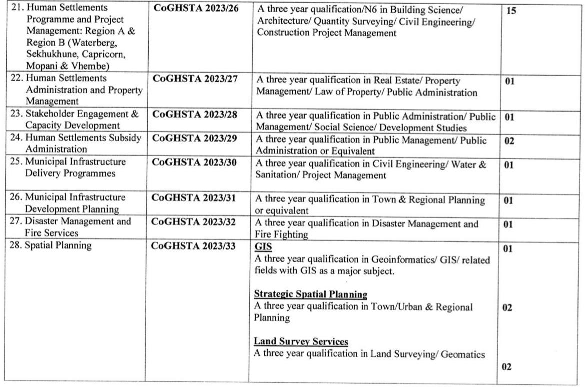 Limpopo Department of Cooperative Governance, Human Settlements and Traditional Affairs (CoGHSTA): Graduate Internships 2023-2025 has become available in Limpopo for unemployed graduates in possession of the below qualifications. If interested, kindly check the below requirements. STREAK OF LUCK!