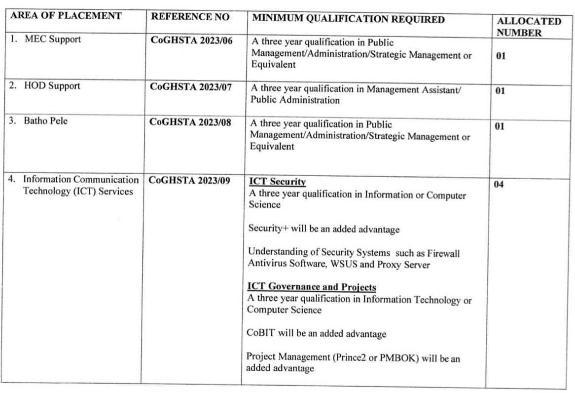 Applications are therefore invited from Limpopo Province unemployed youth qualifying in the following fields of studies and area of placement. People with disabilities are encouraged to apply.